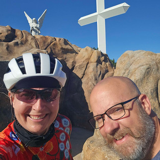 I had been grinding into a migraine-inducing headwind all day when I decided to throw in the towel at around 50 miles. My ACA route said the Cross of Our Lord Jesus Christ Ministries allowed camping on their property, which, as it turns out, is famous for its 19-story cross.